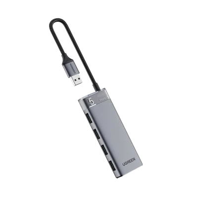 HUB USB-A 3.2 Gen1 4 EN 1 | 4 Puertos USB-A (5Gbps) | Carcasa ABS + PC | Soporta OTG | Luz Indicadora LED | Cable de Nylon Trenzado de 20cm (Mas de 20000 flexiones) | Interfaz Niquelada | Color Gris Metalizado.