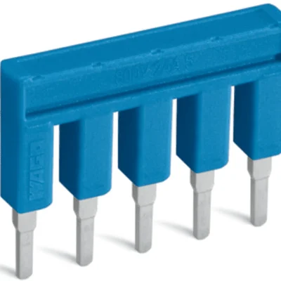 El puente aislado de 10 polos en color azul es ideal para aplicaciones eléctricas que requieren una alta tensión nominal de 800 V y una corriente asignada de 25 A. Fabricado con cobre electrolítico puro, este puente asegura un diseño compacto capaz de soportar la corriente total asignada. Es adecuado para aplicaciones ferroviarias y cumple con los ensayos de vibración y choque según DIN EN 61373.