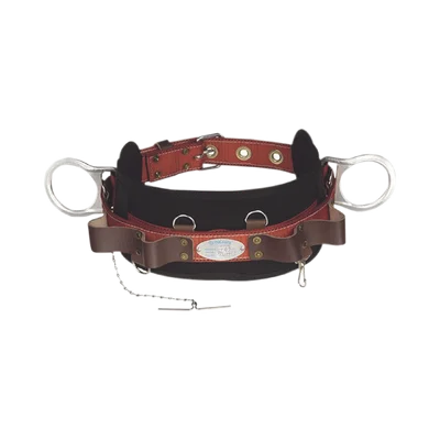 - Fabricado de cinta naranja de poliéster con hebilla de lengüeta y ojillos latonados, con dos anillos tipo “D” doblados a 30, forjados y galvanizados por electrólisis. Cuenta con cojín de respaldo de EVA bondeada de 5mm de espesor y 127mm de ancho y portaherramientas de cuero.