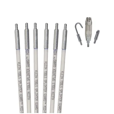 Si alguna vez utilizó barras para guías jalacables de fibra de vidrio, debe saber lo dolorosas y molestas que pueden ser las astillas de fibra de vidrio. El revestimiento protector de estas barras para guías jalacables protege las manos de las astillas. Estas barras flexibles pero rígidas tensan cable en largas distancias. Las barras de 1/4'' (6 mm) y 3/16'' (5 mm) de diámetro se pueden unir para obtener más versatilidad. El juego incluye accesorios que brillan en la oscuridad y facilitan el trabajo.