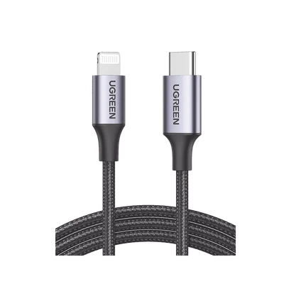Cable USB-C a Lightning | 1 Metro | Certificado MFi | Carga Rápida 60W | 480 Mbps | Conector C94 | Adecuado para iPhone, iPad y iPod | Protección Integrada | Caja de Aluminio | Nylon Trenzado | Color Negro.