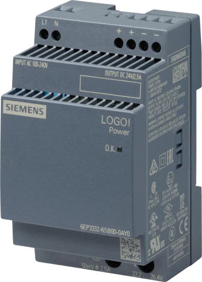 La LOGO!Power 24 V / 2.5 A es una fuente de alimentación estabilizada de alta calidad diseñada para aplicaciones industriales. Ofrece una tensión de salida regulada de 24 V DC con capacidad de corriente de 2.5 A y potencia activa de 60 W. Cuenta con entrada de rango amplio que acepta 100-240 V AC o 110-300 V DC, proporcionando flexibilidad en diversas configuraciones eléctricas. La unidad presenta eficiencia del 89.6% y está certificada para cumplir con los estándares internacionales de seguridad y EMC. Su diseño compacto permite montaje en riel DIN EN 60715 o montaje directo en pared, ideal para integración en cuadros eléctricos y sistemas de automatización industrial.
