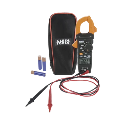 - Multímetro de gancho que mide corriente CA y NCVT con una pinza, así como voltaje CA/CD, resistencia y continuidad con cables de prueba.