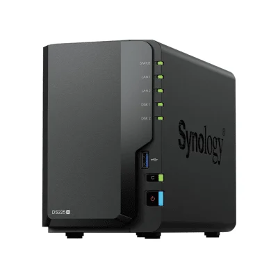 NAS DiskStation DS225+ | 2 Bahías | Intel Celeron J4125 | 2 GB DDR4 | Hasta 40 TB | Puertos 1GbE y 2.5GbE | USB 3.2 Gen 1 | Compatible con RAID | Synology DSM.