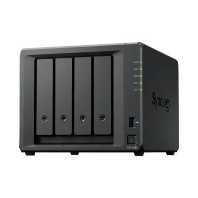 El DiskStation DS425+ de Synology es un NAS de 4 bahías diseñado para ofrecer un rendimiento potente en un formato compacto, ideal para escritorios y pequeñas oficinas. Equipado con un procesador Intel Celeron J4125 de 2.7 GHz, 2 GB de memoria DDR4 y un puerto de red 2.5GbE, este dispositivo proporciona velocidades de transferencia rápidas y una conectividad robusta. Con soporte para hasta 80 TB de almacenamiento, ranuras M.2 NVMe para caché SSD y el sistema operativo Synology DSM, el DS425+ es una solución versátil para almacenamiento, respaldo, sincronización y vigilancia.
