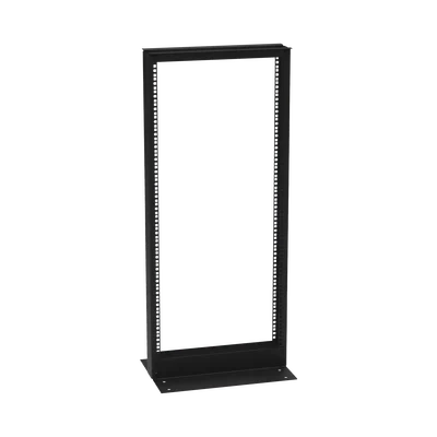 Rack de 2 Postes (Doble Perforación), Estándar 19″, 24 Unidades, Fabricado en Acero, Base «L» para Anclar a Piso.