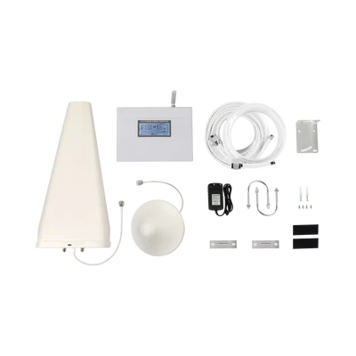 El kit incluye todo lo nencesario para su funcionamiento; amplificador, fuente de alimentación, antena exterior (donadora), antena interior (de servicio) y un par de jumpers coaxiales de 20 m y 5 m. Adicional puede considerar el mástil SMRP-150-CF para la antena exterior y un montaje TX-ML-DOM o TX-MZ-DOM para la antena interior.