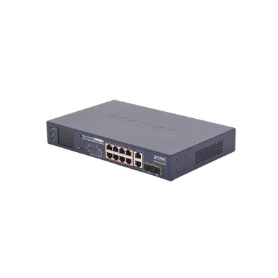 Switch PoE+ / Distancia 250 Metros / 8 Puertos + 2 Combo TP/SFP Gigabit y Pantalla LCD Para Monitoreo