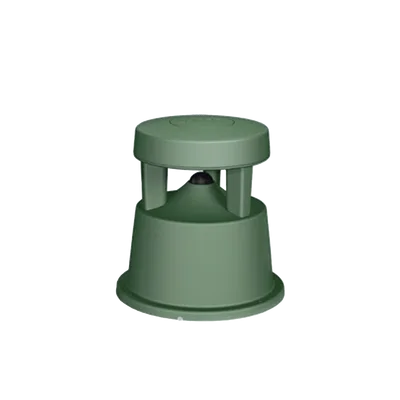 Altavoz ambiental de rango completo diseñado para mezclarse con el paisaje en aplicaciones enterradas o sobre el suelo, como centros comerciales, restaurantes al aire libre, complejos turísticos y parques temáticos.