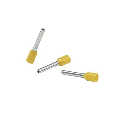 La férula aislada del manguito final de DIN de cable individual de color amarillo tiene una acceso tipo embudo para la inserción más rápida y menos costos de instalación. Fue diseñada para las férulas de cableado n.° 4 (25,0 mm²) de la American Wire Gauge (AWG) y compat. c/diámetro máximo de aislamiento de cable de 0,43 (11,0 mm). La férula con aislamiento es de 1,14 (29,0 mm) de largo y una longitud de la banda de cable de 0,750 (19,1 mm). Se ofrece en paquetes estándar de 50 unidades.