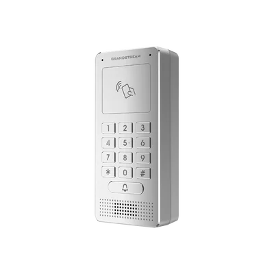 El GDS3705 se diseñó para usuarios que buscan una solución sólida de control de acceso a instalaciones sólo con audio y de monitoreo de seguridad que pueda implementarse en ambientes de cualquier tamaño. Este sistema de intercomunicador (citófono) incluye micrófonos duales y altavoz HD con AEC de tecnología avanzada para ofrecer la función de intercomunicación, puede soportar llamadas SIP a teléfonos IP y tiene un lector de tarjeta de proximidad RFID integrado y teclado para acceso seguro con o sin clave. El GDS3705 viene equipado con una carcasa metálica con aleación de zinc, haciéndolo impermeable y a prueba de vandalismo y ofrece soporte de entrada y salida de alarma para integración con dispositivos de seguridad existentes. El GDS3705 se integra con el software gratuito de gestión de servicios de Grandstream, el GDS Manager, permitiendo que la información de la tarjeta RFID, así como el dispositivo sean totalmente gestionados por este software. Gracias a su integración con otros dispositivos Grandstream como los teléfonos IP y la aplicación móvil GS Wave, el GDS3705 ofrece una solución continua completa para control de acceso, intercomunicación y necesidades de seguridad.