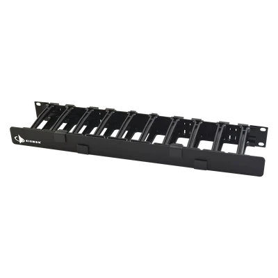 Los administradores de cables horizontales RouteIT de Siemon están diseñados específicamente para gestionar los desafíos de cableado de alta densidad. El modelo HCM41U es una solución versátil que proporciona un enrutamiento adecuado y protección para cables y cordones de conexión en entornos de rack de 19'.