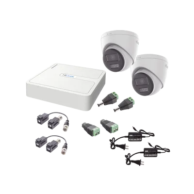 Kit HiLook Audio Bidireccional TurboHD 1080p / DVR 4 Canales / 2 Cámaras Turret (Exterior) con Bocina y Microfóno Integrado / 2 Fuentes de Poder / Accesorios