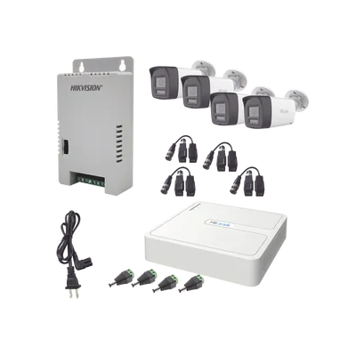 Kit HiLook Audio Bidireccional TurboHD 1080p / DVR 4 Canales / 4 Cámaras Bala (Exterior) con Bocina y Micrófono Integrado / 1 Fuente de Poder / Accesorios