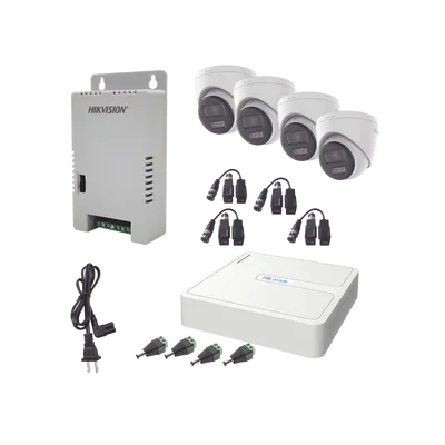 Kit HiLook Audio Bidireccional TurboHD 1080p / DVR 4 Canales / 4 Cámaras Eyeball (Exterior) con Bocina y Microfóno Integrado / 1 Fuente de Poder / Accesorios
