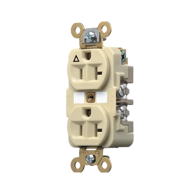 Contacto dúplex, grado industrial, 2 polos, 3 cables, 20A 125V, NEMA 5-20R, color marfil.