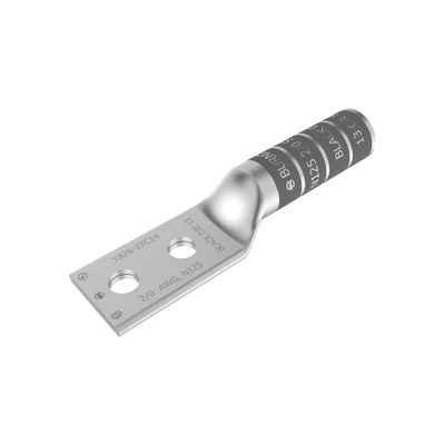 Zapata Terminal de Cobre Electrolítico/ Cañon Largo con 2 Perforaciones para Tornillos de 1/2″ / Cable Calibre 2/0 / Espaciamiento entre orificios de 1 3/4″.