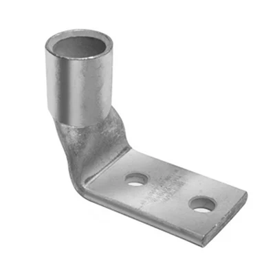 Terminal de Compresión de Barril Corto a 90° con Doble Ojillo para Tornillo #10 y Cable 6 AWG / Espaciado de 5/8″