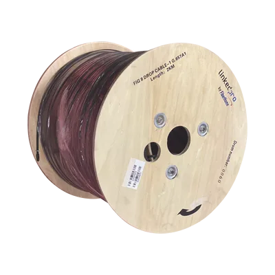 Carrete de 2 km de Fibra Óptica Aérea Mini Figura 8 G.657A1 tipo Drop, Monomodo de 1 Hilo (unifibra), Color Negro, Span 80