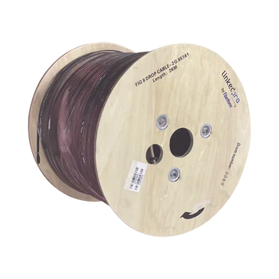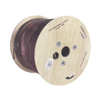Carrete de 2 km de Fibra Óptica Aérea Mini Figura 8 G.657A1 tipo Drop, Monomodo de 2 Hilos (bifibra), Diseñada para Fusionarse, Color Negro, Span 80, (No Soporta Conectores Mecánicos)