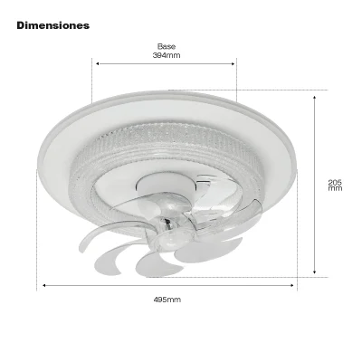 Ventilador de Techo con Luminario LED de 110 V CA 50/60 Hz / 88 W / 3 Tonos de Luz (6500 – 4 000 – 2 700 K) / Con giro 360° / Diámetro 495 mm / 6 Velocidades / Dimeable.