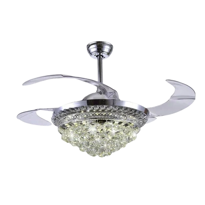 - Ventilador de techo de cristal con aspas de acrílico transparentes retráctiles de ABS, lámpara de LED ideal para sala de estar, comedor y dormitorio.