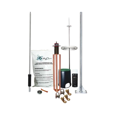Kit completo de Pararrayo Tipo Dipolo Corona con tierra física de alta demanda. Cuenta con Pararrayos Dipolo Corona y Accesorios de Instalación.
