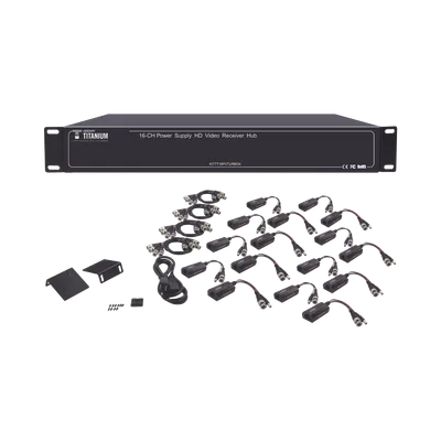 Kit de TRANSCEPTOR ACTIVO DE 16 Canales / VIDEO+PODER en un solo Cable UTP / 150m en 4K, 200m en 5 MP/ Envía 36 Vcc y recibe 12 Vcc / TODO INCLUIDO PARA RACK / Compatible con cámaras HD-TVI/CVI/AHD/CVBS / Instalación Limpia