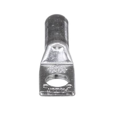 Talón de compresión de cobre estañado LCA4-56-L, un orificio, tambor estándar, tambores codificados por color marcados con números de índice de dado de Panduit y de un competidor especificado para la adecuada selección de dados. Una mirilla de inspección ayuda a comprobar visualmente la inserción total del conductor, y el material estañado previene la corrosión. Listado UL y certificado por CSA para 35 KV y con calificación de temperatura hasta 90°C.