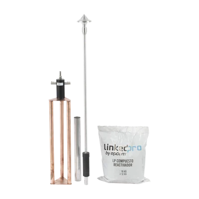Punta Pararrayos de rechazo catódico fabricada en Aluminio, para protección de estructuras de 50 metros en diámetro de cobertura. Brinda un punto seguro para captar y drenar la corriente del rayo a tierra.