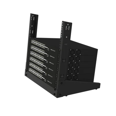 - Rack de dos postes ligero, para uso en mesa o escritorio.