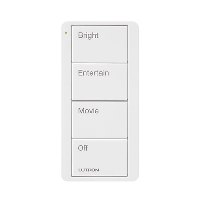 Control inalámbrico de 4 botones para escenas predefinidas y grabado. Compatibilidad con sistemas Caseta Wireless, RA2 Select y RadioRA2.