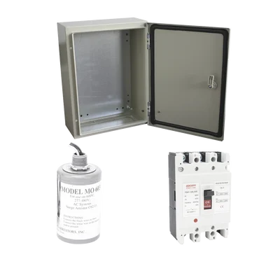 Kit de Centro de Carga Trifasico Para Corriente Alterna, Breaker de hasta 690 Vc de 100 A con Supresor de Descargas Atmosféricas.