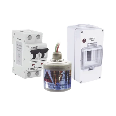 Kit de Centro de Carga Para Corriente Directa, Breaker de hasta 800 Vcc de 16 A con Supresor de Descargas Atmosféricas.