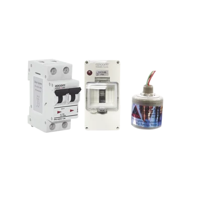 El uso del KIT es recomendado en sistemas fotovoltaicos para protección de corriente directa, su principal aplicación son los sistemas de interconexión entre la cadena de paneles solares y el inversor central, la pastilla térmica es de 800 Vcc en 20 A de 2 polos, donde se pretende proteger el positivo y el negativo del arreglo.