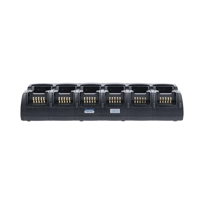 - Incluye seis cavidades dobles que se pueden configurar para una radio específica o seis modelos de radio diferentes