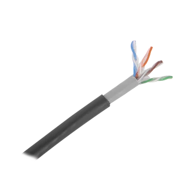 Bobina de cable de 305 m, Cat5E, con gel, para intemperie, doble forro extrema humedad, bajo tierra, UL, color negro para aplicaciones en video vigilancia, y redes de alta velocidad.