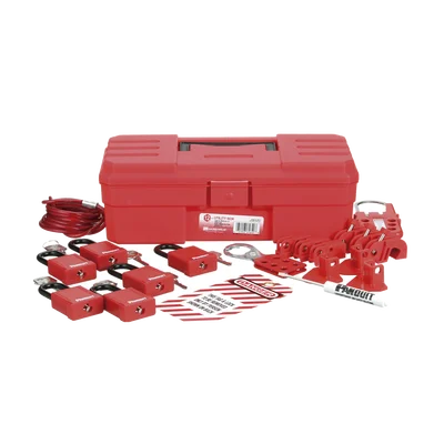 El kit de bloqueo para contratistas PSL-KT-CONA tiene diferentes dispositivos de bloqueo y etiquetado que suelen usar los contratistas eléctricos. Incluye destornillador, bolso de transporte PSL-KT de 5.0' x 3.5' x 11.0' (127 x 89 x 279mm), 6 candados no conductores rojos PSL-8, pasador de bloqueo PSL-1A con diámetro de mordaza de 1.0' (25mm), dispositivo de bloqueo múltiple PSL-MLD, 3 bloqueadores de interruptores de pared PSL-WS, 3 dispositivos de bloqueo para disyuntores sin uso de herramienta PSL-CBNT, 3 bloqueadores para enchufe PSL-P, 15 etiquetas de seguridad 'EQUIPMENT LOCKED OUT BY...' PVT-98.