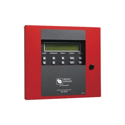 El anunciador remoto RA-2000 rojo puede utilizarse para operar y programar el FACP IFP-2000 o el RPS-2000. El teclado y la pantalla del RA-2000 se conectan al anunciador integrado del panel de control IFP-2000.