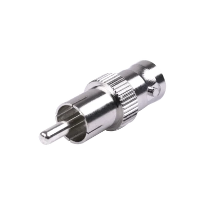 - Adaptador de BNC Hembra a RCA Macho tipo Fono para Aplicaciones de Audio-Video, Níquel/ Plata/ Delrin.