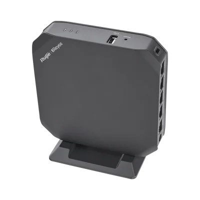 El Router Inalámbrico Profesional RG-EG105GW(T) de Ruijie es la solución integral perfecta para pequeños negocios que requieren una red potente y de sencilla configuración. Este dispositivo combina un diseño discreto y una instalación flexible para escritorio o pared con la tecnología Reyee Mesh, que permite expandir la cobertura de forma estable con solo presionar un botón. Su configuración unificada simplifica enormemente el despliegue de la red completa. Además, ofrece la capacidad de monitorizar de forma segura su NVR, cámaras IP o servidor interno en cualquier momento y desde cualquier lugar, garantizando el control y la supervisión remota de su negocio.