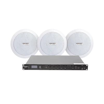 KIT de Amplificador de 120W para Rack SF120DTB | 3 Altavoces de Plafón de 5.5in SF-206P | 3.75 – 30W | Sistema 70/100V