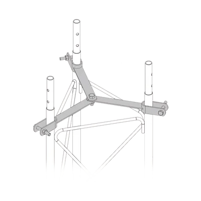 - Las longitudes de las retenidas están calculadas para colocar las anclas a un 70% de la altura total de la torre