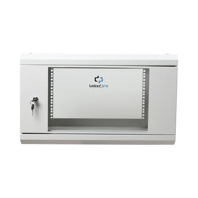 Gabinete de Pared de 6U con Puerta de Cristal Templado, 455 mm de Profundidad Total, Rack de 19», Acero Reforzado Color Gris Mate