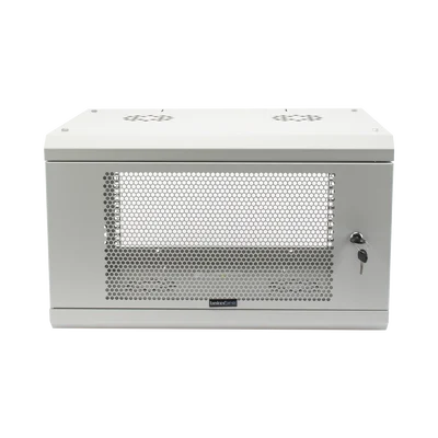 Gabinete de Pared de 6U con Puerta Perforada, 455 mm de Profundidad Total, Rack de 19», Acero Reforzado Color Gris Mate