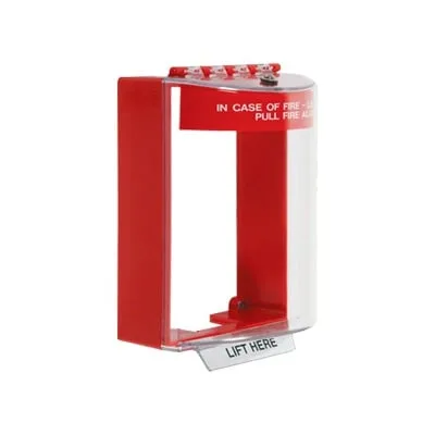 Esta cubierta universal transparente tiene un montaje en superficie y con etiqueta de fuego en color rojo. La cubierta está diseñada para cumplir con la norma ADA y tiene menos de 4 pulgadas de profundidad. Universal Stopper tiene la misma forma que el Mini Stopper, pero tiene un interior más grande y tiene capacidad para la mayoría de estaciones de palanca de doble acción.