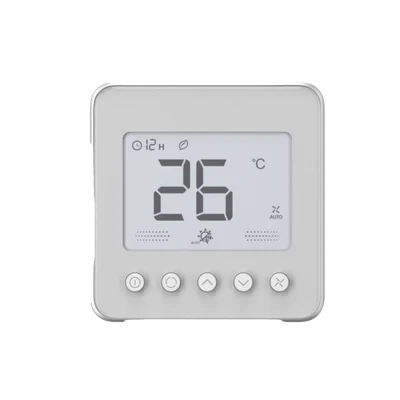 Termostato para Fan & Coil de 2 o 4 tubos, alimentación a 120 VAC, cuadrado, color blanco
